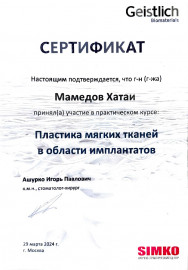 Доктор постоянно повышает квалификацию, стажируется и перенимает опыт у лучших хирургов и имплантов, проходит обучение: